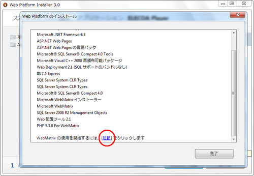 これでインストールは終わりました。IIS Expressは、WebMatrix上で起動するため、WebMatrixを起動します。