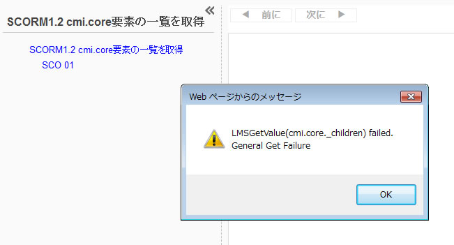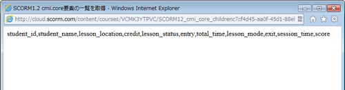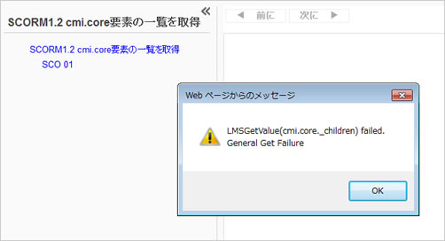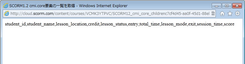 cmi.core._children を利用すると、LMSがサポートするcmi.core要素を一覧で取得することができます。動作させるLMSで、どの要素が利用できるか、一つの目安になりますが、取得できた要素が、正しく動作するかまでは判断できません。LMS内で要素が存在しているか、していないか、分ることはそこまでです。