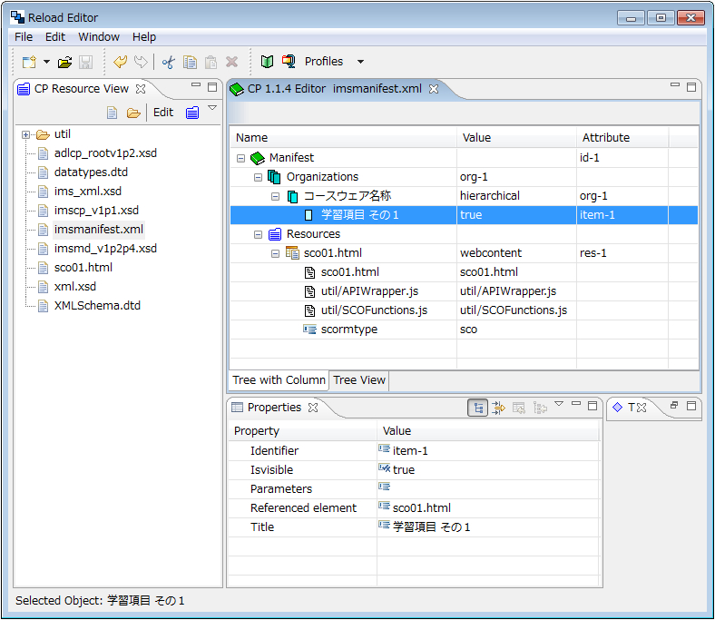 学習資源は、基本的に個々が独立しているため、それらをどのように繋げて、制御をしたいのか、そういった記述は、すべてこのマニフェストファイルに記述します。マニフェストファイル1つで同じ学習資源でもコンテンツの挙動はまったく違うものになります。また、このファイルが無ければLMSは、コースウェアとして認識することができません。それだけとても重要なファイルです。